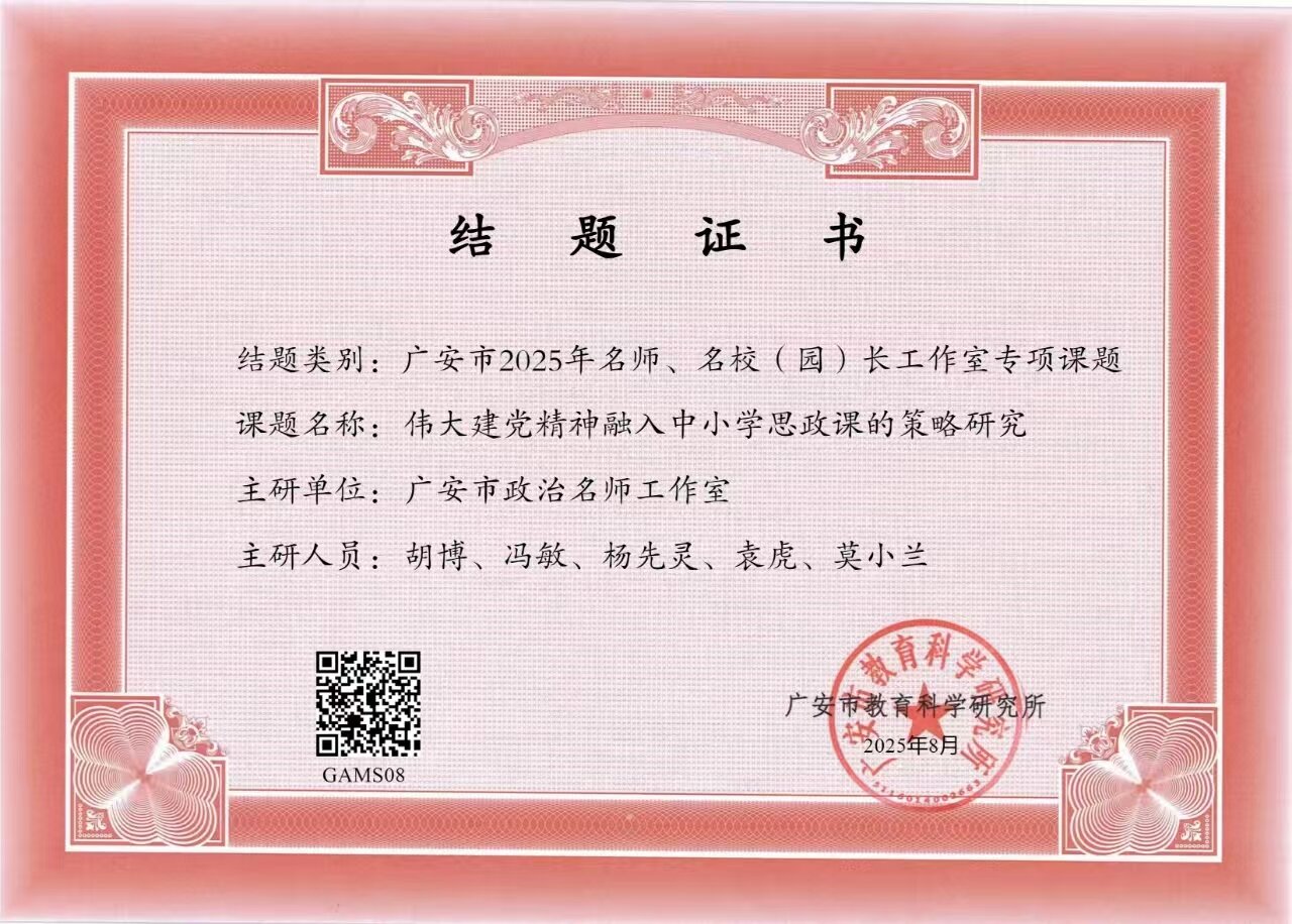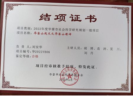 《华蓥山起义之华蓥山精神》于2024年6月获华蓥市社会科学界联合会颁发的结题证书