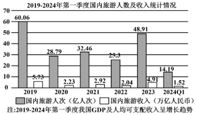 7.下面图表为2019—2024年第一季度国内旅游部分统计数据: