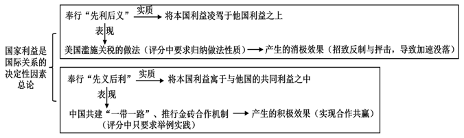 关键词③:在国际事务中要践行正确义利观。正确义利观强调义利相兼、以义为先;在合作共赢中取“利”,是我们应该遵循的“大义”→可联系教材知识构建人类命运共同体,指出“先义后利”的做法,成人达己,能带来协和万邦的效果。