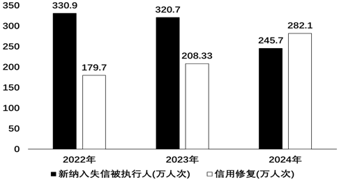 12.下图为2022—2024年全国人民法院新纳入失信被执行人与信用修复数据图。