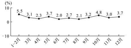 8.下图反映的是2024年我国社会消费品零售总额同比增长速度情况,(数据来源:国家统计局)