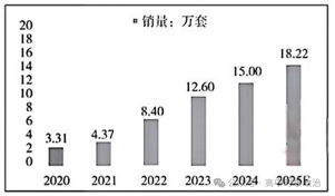 2.随着智慧农业的战略新兴发展趋势和国家政策的大力支持,农业科技得到快速发展。下图为2020——2025年中国农机自动驾驶系统销量预测趋势图。