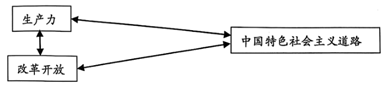 关键词④:中国特色社会主义道路、生产力、改革开放→从中国特色社会主义道路、生产力、改革开放关系的角度分析:在中国特色社会主义道路上继续深化改革开放和发展生产力,实现中华民族的伟大复兴。