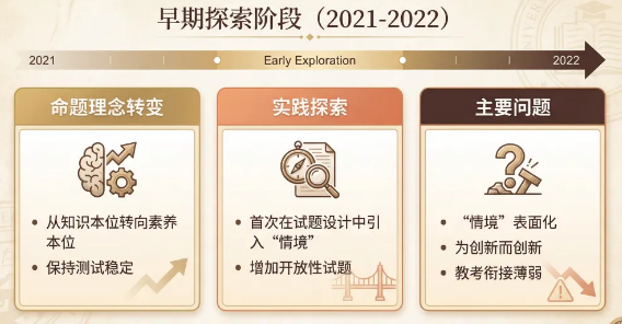 这一阶段的特征是“素养导向”从理论探讨全面转向大规模命题实践,情境化设计的覆盖面从理工科扩展至全学科 4。