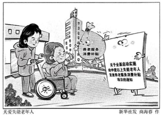 5.下列说法与漫画"关爱失能老年人"意思表达一致的是: