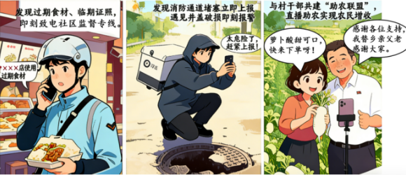 6.在街巷阡陌,新就业群体劳动者以脚步为墨,绘就基层治理新图景,用职业作笔,晕染共建共治微星光: